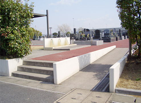 寺院墓地ならではの落ち着いた雰囲気の中、墓苑は周囲に高い建物がなく平坦で、明るく広々としています。参道も広くゆるやかなスロープも設置してありお年寄りや車椅子の方でも安心してお墓詣りが出来ますね。