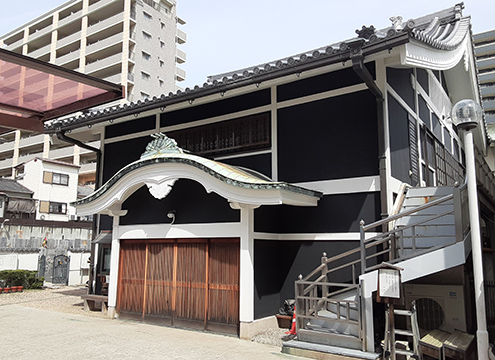 ・上本町6丁目交差点より北へ。400m先左側に寺院があります。